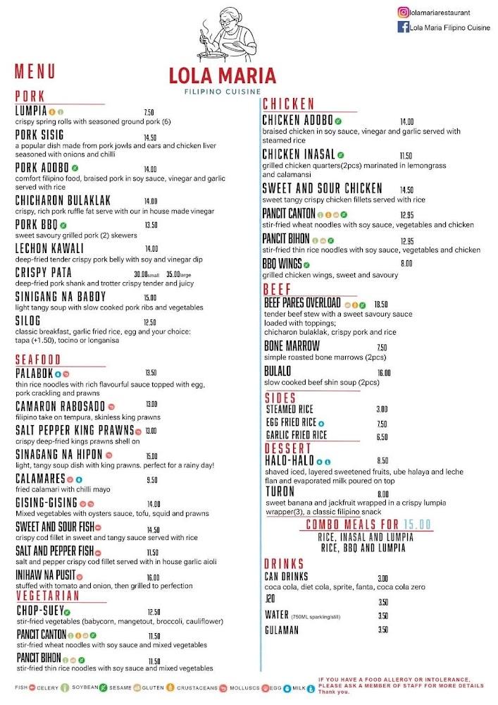 Parking options are available, and the service includes kerbside pickup and delivery, making it easy to enjoy Lola Maria's delicious offerings from anywhere.
